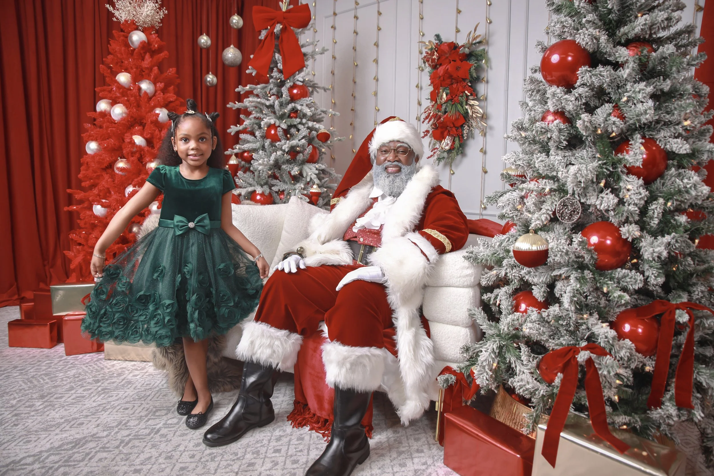 Our experienced Santas are available for studio sessions, private events, and corporate holiday celebrations throughout Houston and beyond. Families trust The Black Santa Houston for high-quality photography, warm interactions, and memorable holiday experiences for children of all ages.